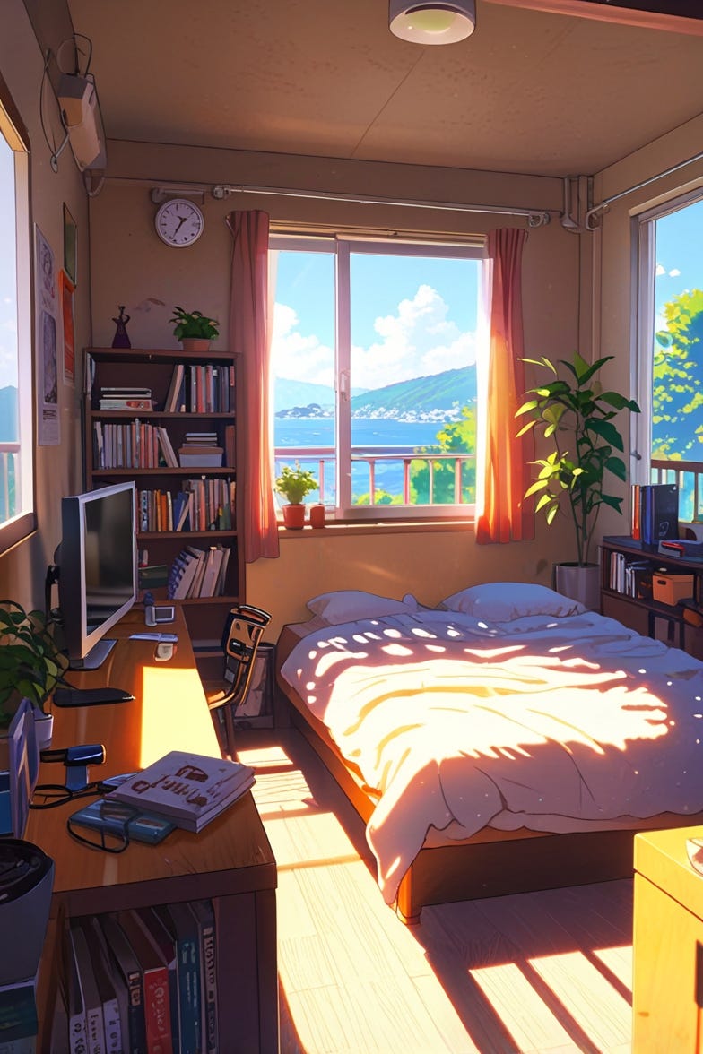わたしのへやは せいけつです。まいにち そうじを します。そうじをしたあと、きれいなへやで おんがくを ききます。それは とても たのしいじかんです。